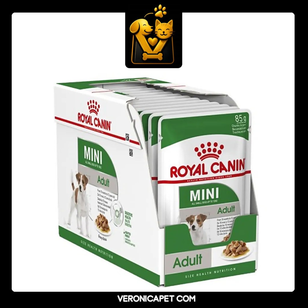 پوچ سگ بالغ کوچک یا Mini Adult Wet مینی ادالت وت رویال کنین غذایی کامل برای سگ های بالغ بالای 10 ماه با وزن 1 تا 10 کیلوگرم است.