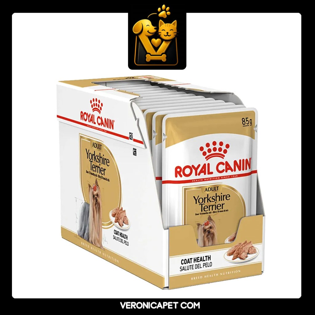 غذای پوچ یوکشایر بالغ Yorkshire Wet رویال کنین برای سگ های این نژاد از سن 10 ماهگی قابل استفاده است. این محصول پوست و مو را تقویت می کند.