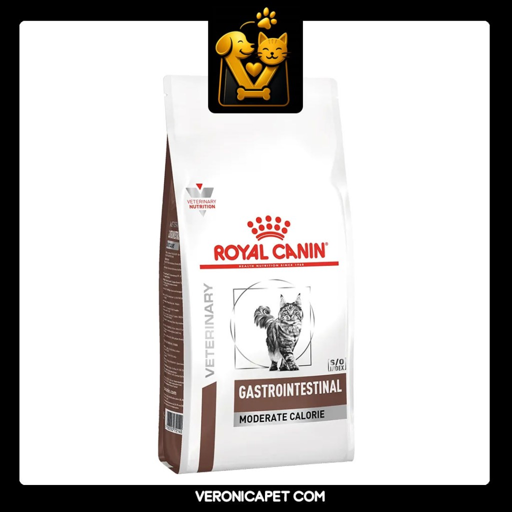 غذای درمان مشکلات گوارشی با کالری متوسط یا Moderate Calorie گاسترو اینتستینال مدریت کالری رویال کنین برای گربه های بالغ مناسب است.