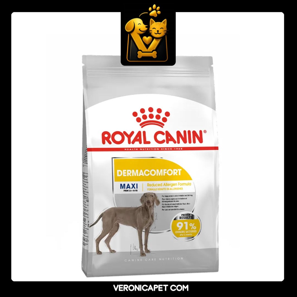 غذای سگ بالع نژاد بزرگ با پوست حساس یا Maxi Dermacomfort مکسی درماکامفورت رویال کنین از سن 15 ماهگی قابل استفاده بوده و دارای تاثیر اثبات شده است.