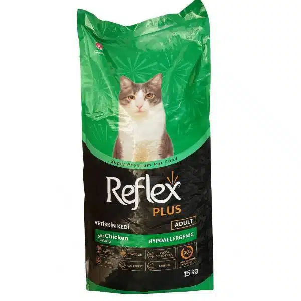 غذای خشک گربه بالغ رفلکس پلاس مرغ، ساخته شده برای گربه های بالغ می باشد و قابلیت هضم بسیار بالایی دارد