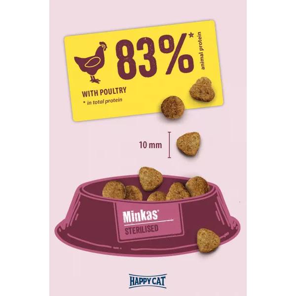 غذای خشک گربه هپی کت مینکاس با فرمولاسیون خاص، تمام نیازهای تغذیهای گربهی بالغ عقیم شده را رفع میکند.