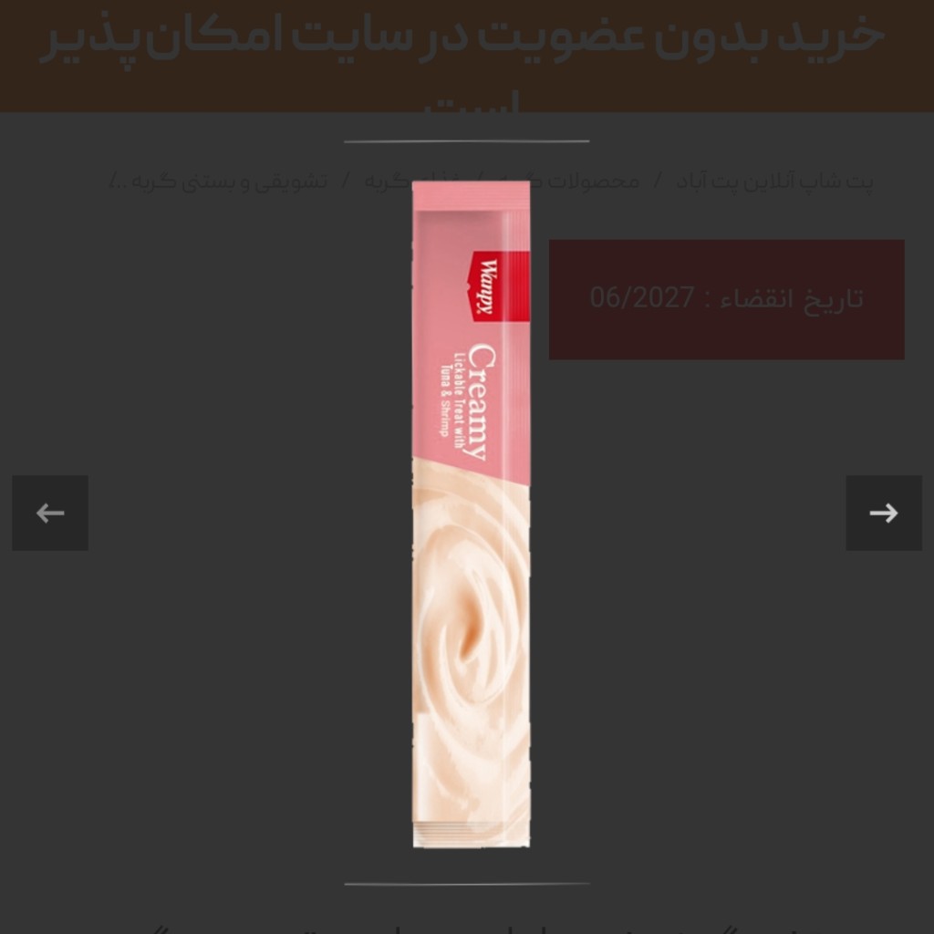 | مشخصات محصول | وزن هر عدد 14 گرم گونه حیوان گربه طعم ماهی تن و میگو پروتئین ۶.۵% چربی ۰.۰۲% برند Wanpy کشور سازنده چین |