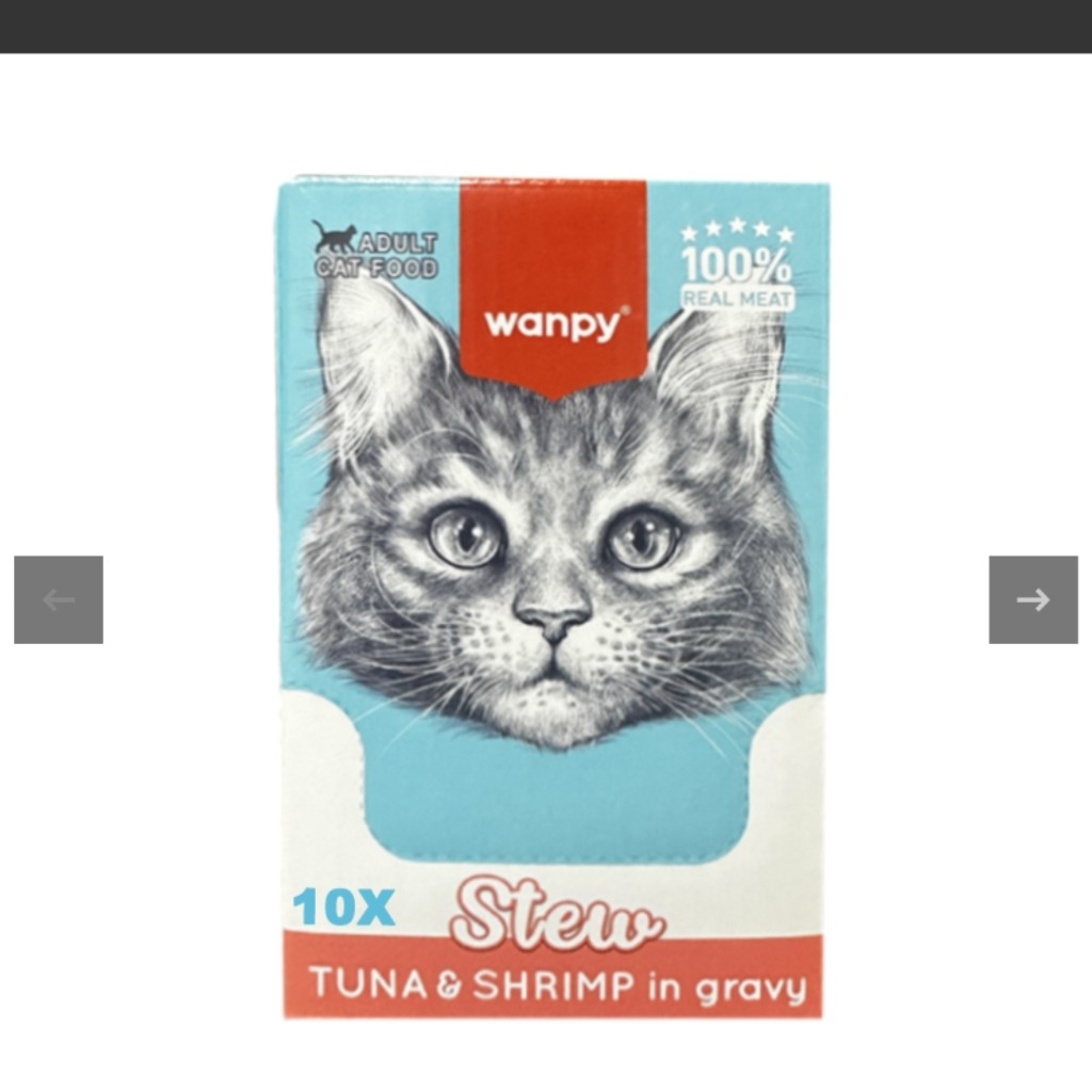 پوچ خورشتی گربه ونپی مدل استیو با طعم تن و میگو Wanpy Stew With Tuna & Shrimp in Gravy بسته 10 عددی