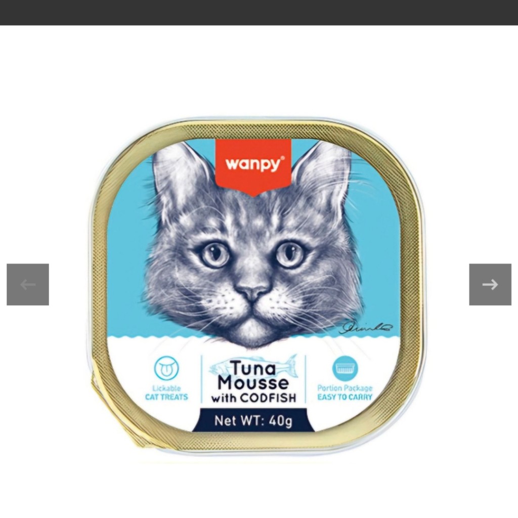 | مشخصات محصول | وزن 40 گرم گونه حیوان گربه طعم ماهی تن و کاد نوع mousse برند Wanpy کشور سازنده چین |