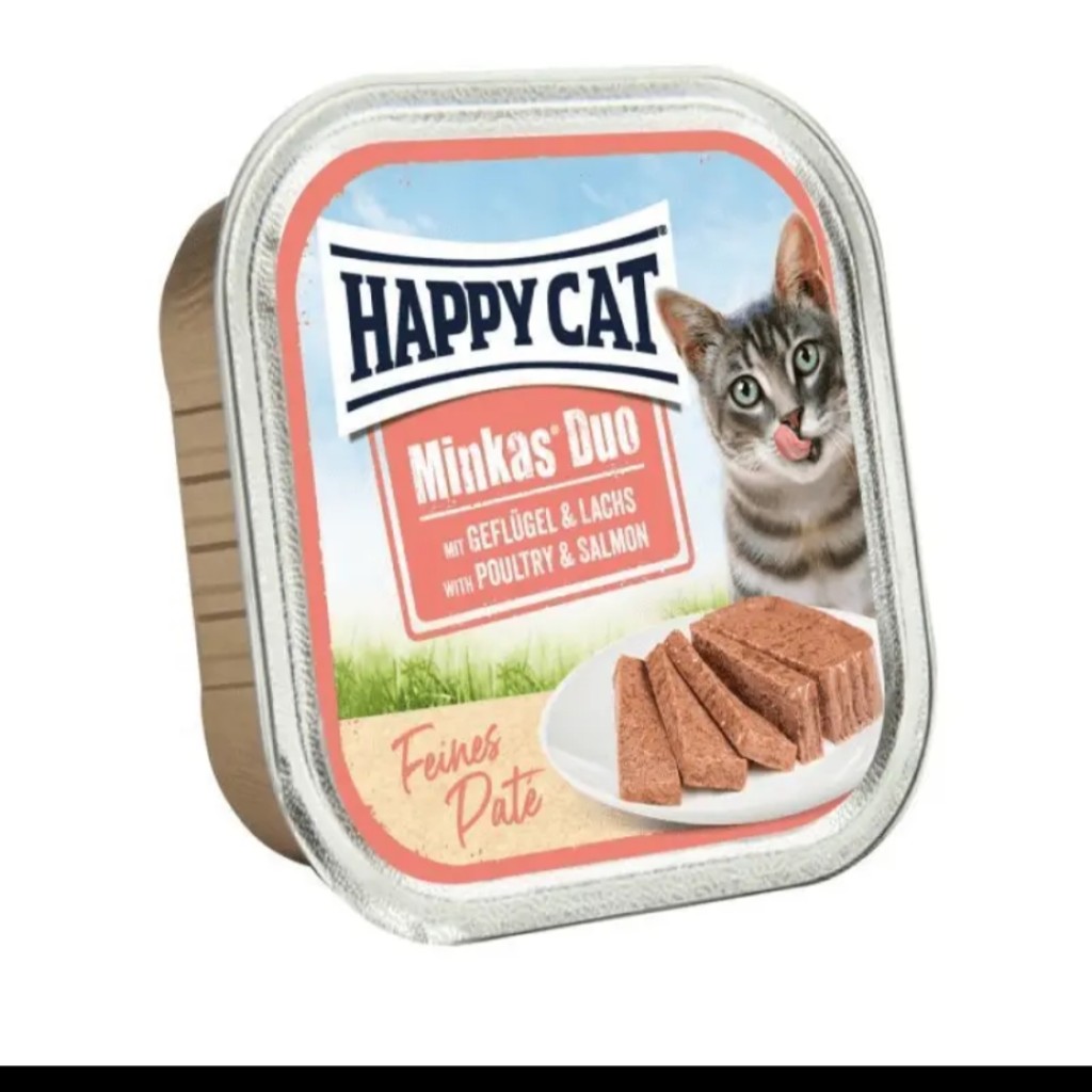ووم گربه هپی کت مدل Minkas Duo با طعم مرغ و سالمون 100 گرم