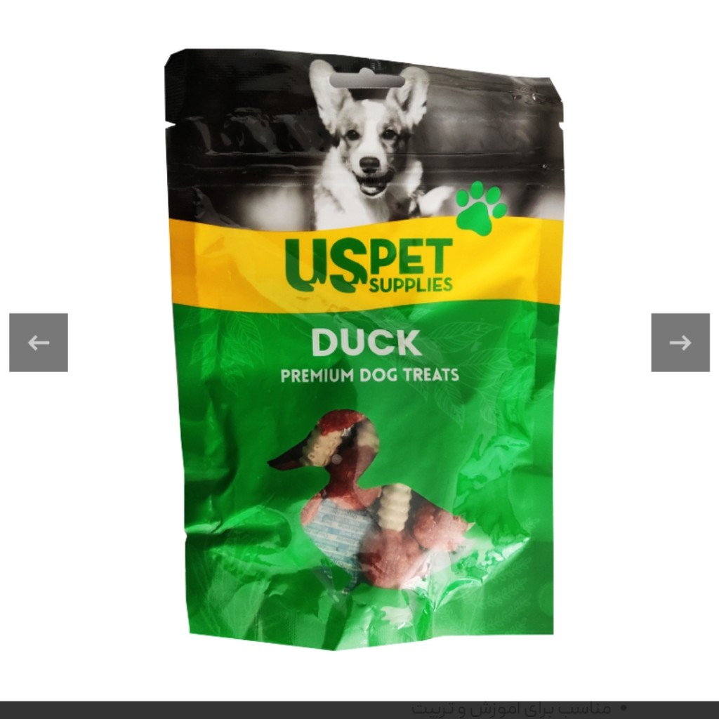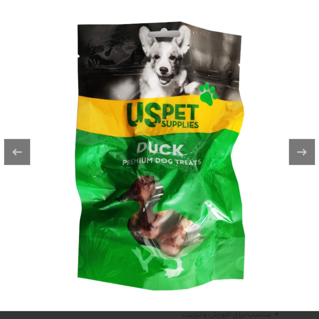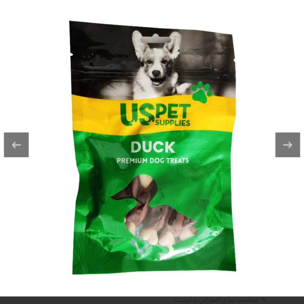 | مشخصات محصول | وزن هر عدد 100 گرم وزن کل 600 گرم گونه حیوان سگ طعم گوشت اردک برند US Pet کشور سازنده چین |